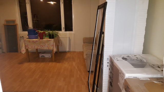 Förra året hämtade vi ved i plastlådor från plåthallen men i år har jag ett vedrum i källaren. Det ryms